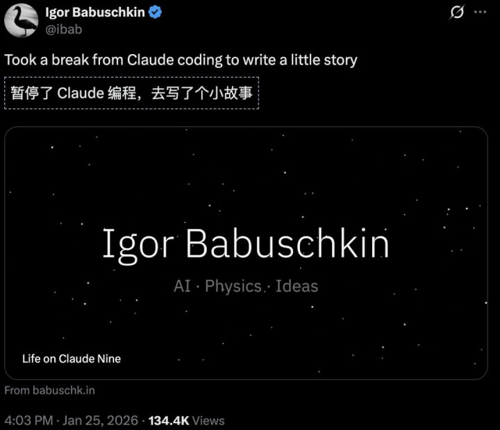 昨日凌晨4点,Igor Babuschkin从Claude编程中,稍事休息,写了一个小故事,一个科幻故事——《Life on Claude Nine》。